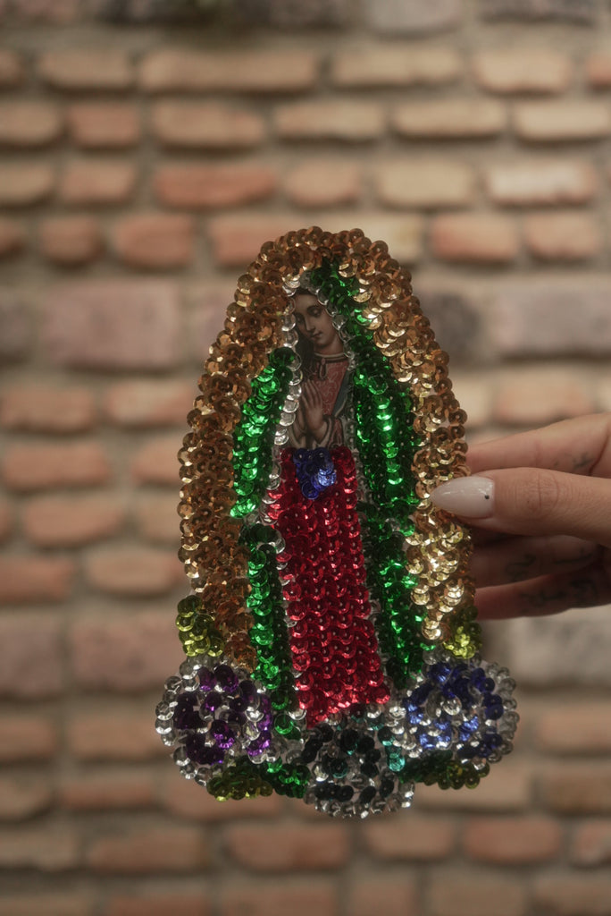 Auténticos parches de lentejuelas mexicanos con imagen Virgen de Guadalupe
